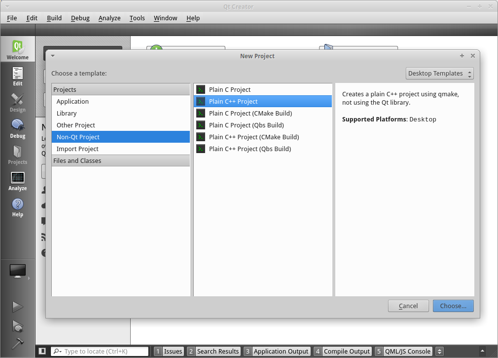 Une nouvelle fenêtre devrait apparaître. Allez dans les projets non Qt à gauche puis sélectionnez un projet C++ comme sur l'image. Enfin, validez. Nous n'utilisons pas Qt tout de suite, nous le découvrirons plus tard dans le livre.